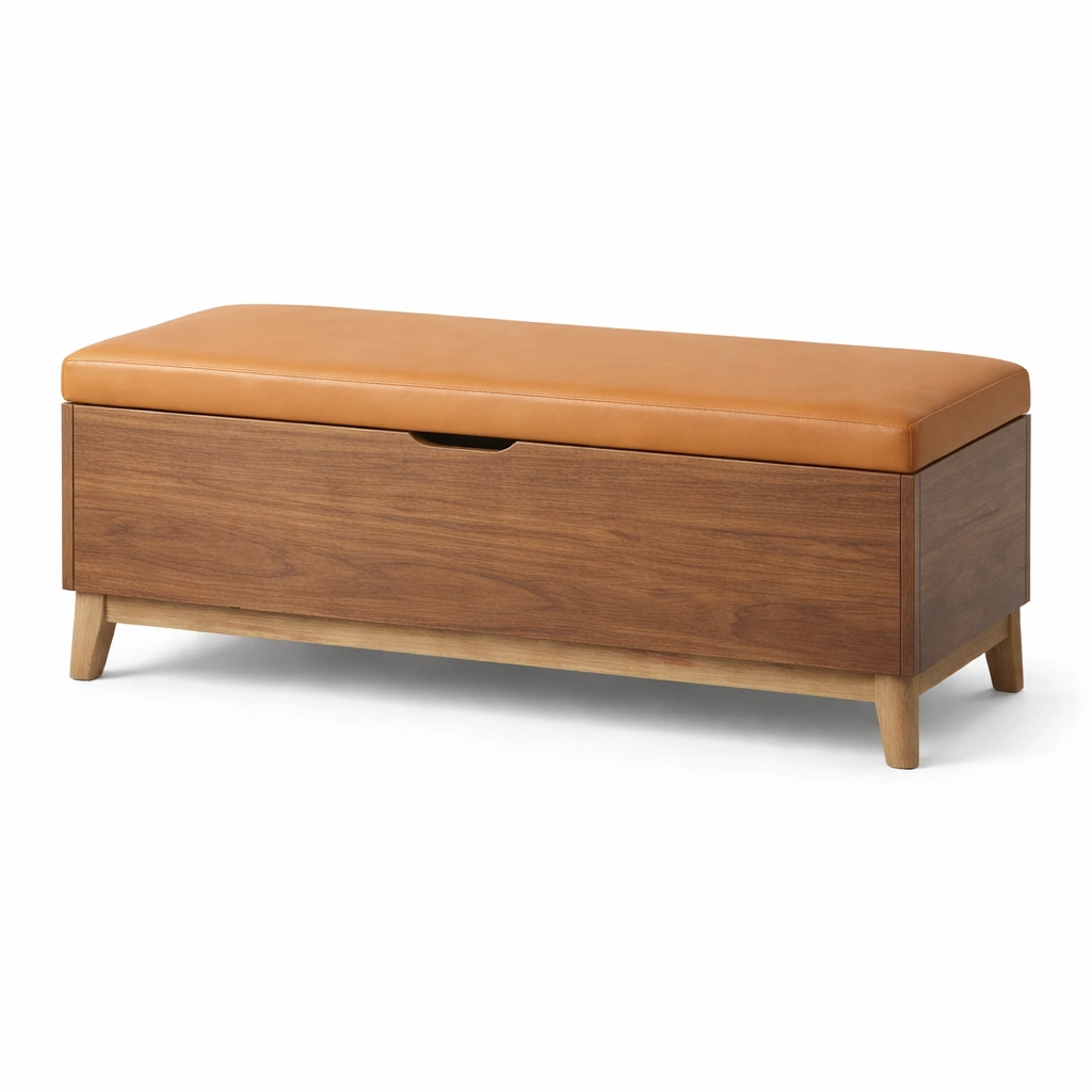 Material: Estructura de madera maciza, tapizado en cuero sintético de poliuretano.