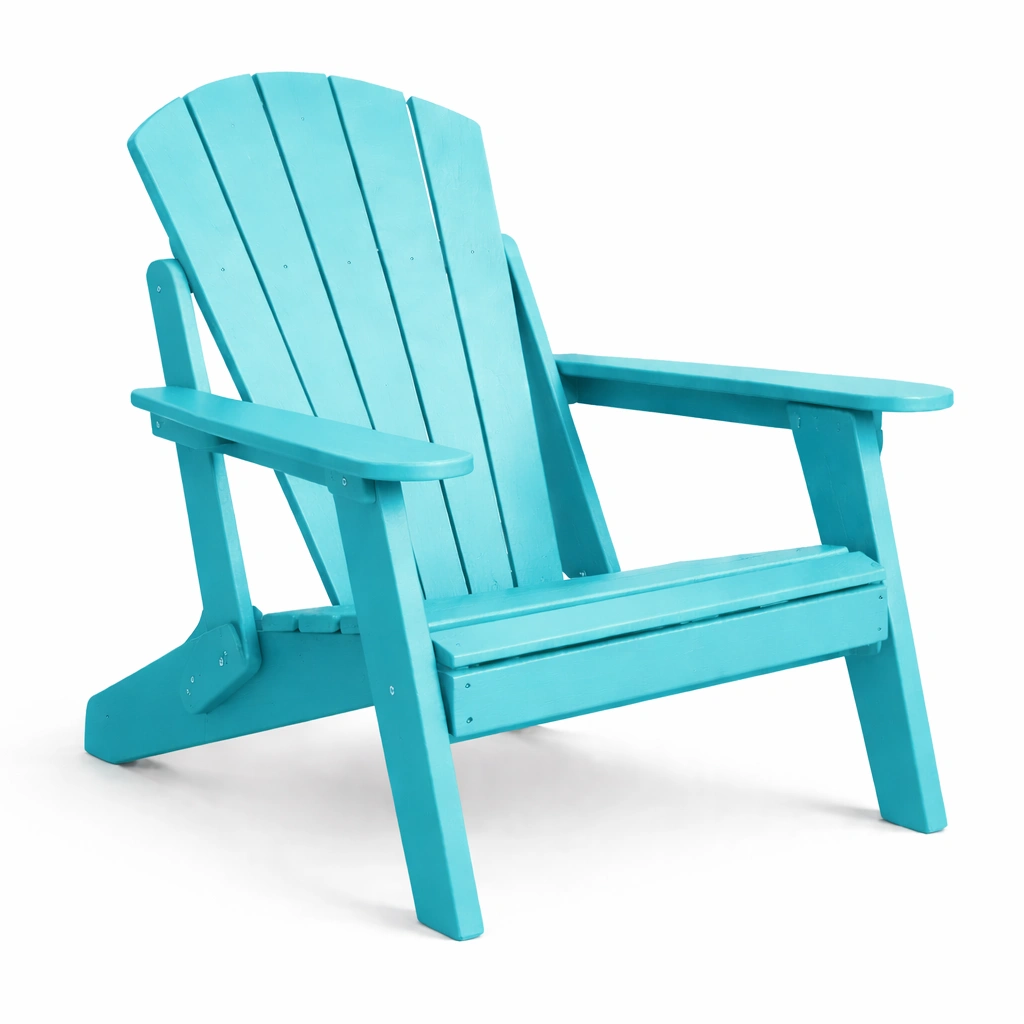 La silla Adirondack está hecha de madera tratada con pintura resistente a la intemperie, diseñada para uso en exteriores. Presenta un respaldo alto y reposabrazos amplios. Sus dimensiones son: altura 88 cm, ancho 78 cm, y profundidad 96 cm. Peso: 15 kg y soporta hasta 150 kg.